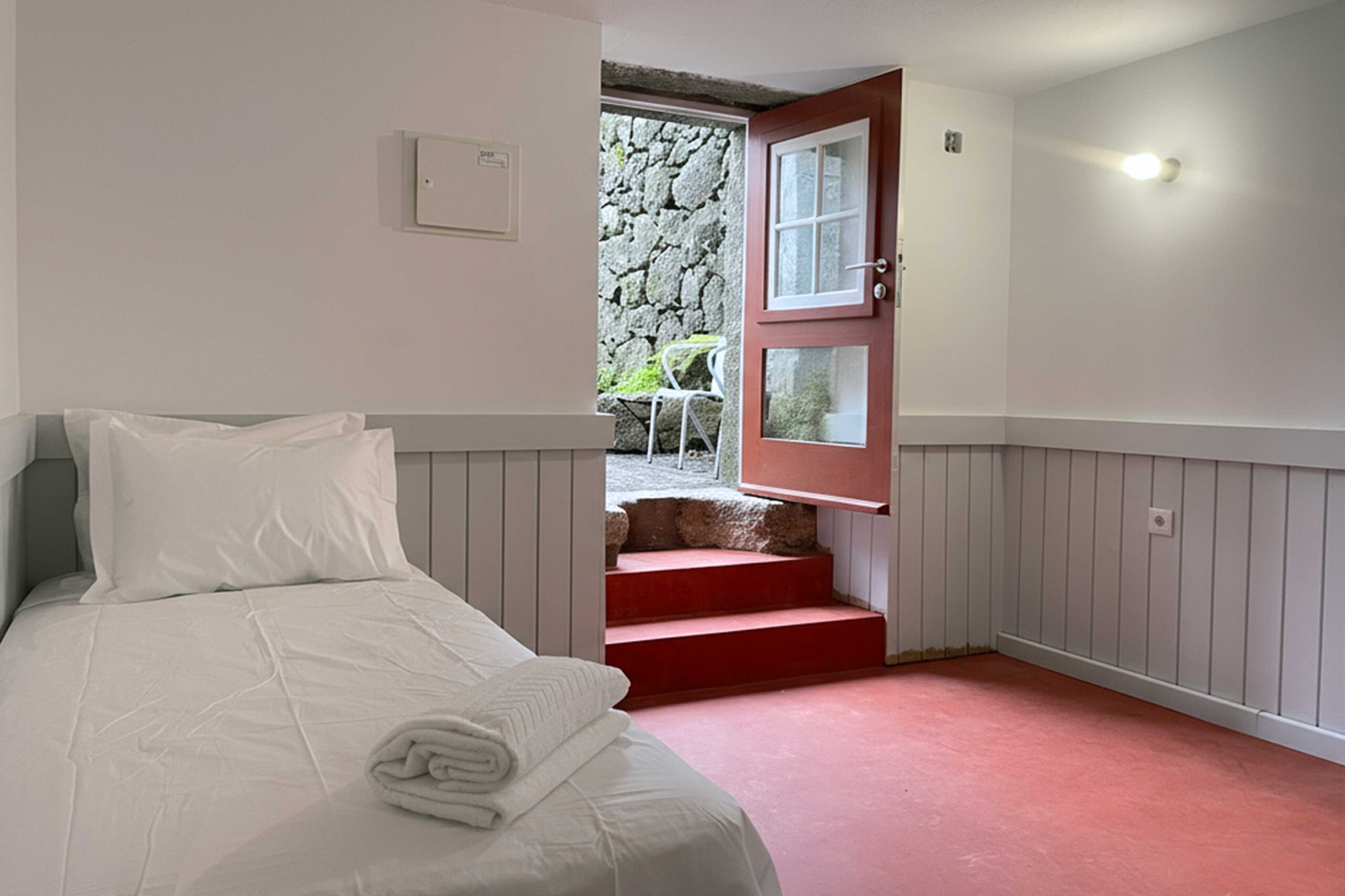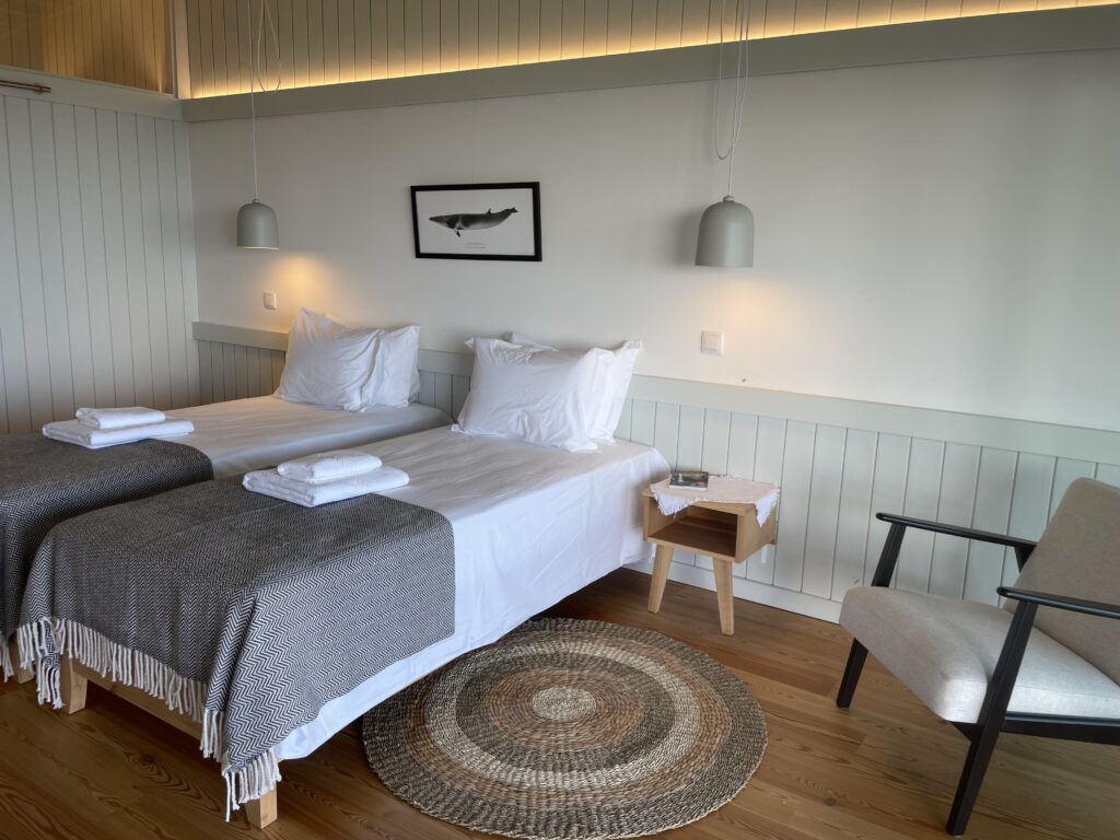 Quarto destinado a guias acompanhantes de grupos. Se vem acompanhar um grupo de atividades de mar ou montanha é muito bem-vindo e saiba que os Abrigos Baleeiros dispõem de 1 quarto com 2 camas individuais e casa de banho partilhada, situado num belo edifício antigo, de pedra basalto, requalificado.